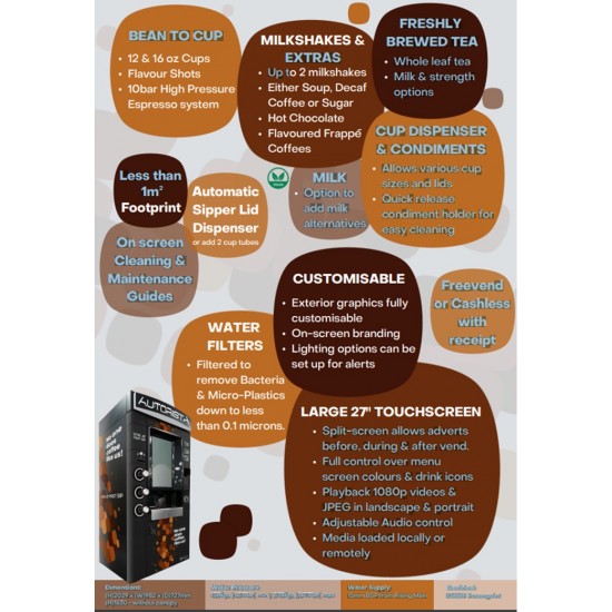A unique range of free standing and versatile hot drink towers with a fully integrated bean to cup coffee engine. Choose either the standard 'Store' t..